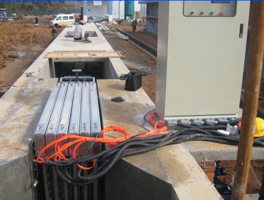 紫外消毒設(shè)備采用模塊化設(shè)計,安裝、維護(hù)均可用吊車吊離水面,維護(hù)或檢修時無需中斷整個系統(tǒng)的運(yùn)行。同時,即使一個消毒模塊出現(xiàn)故障也不會影響其他消毒模塊的運(yùn)行,只需將發(fā)生故障的消毒模塊吊起維修或更換即可。